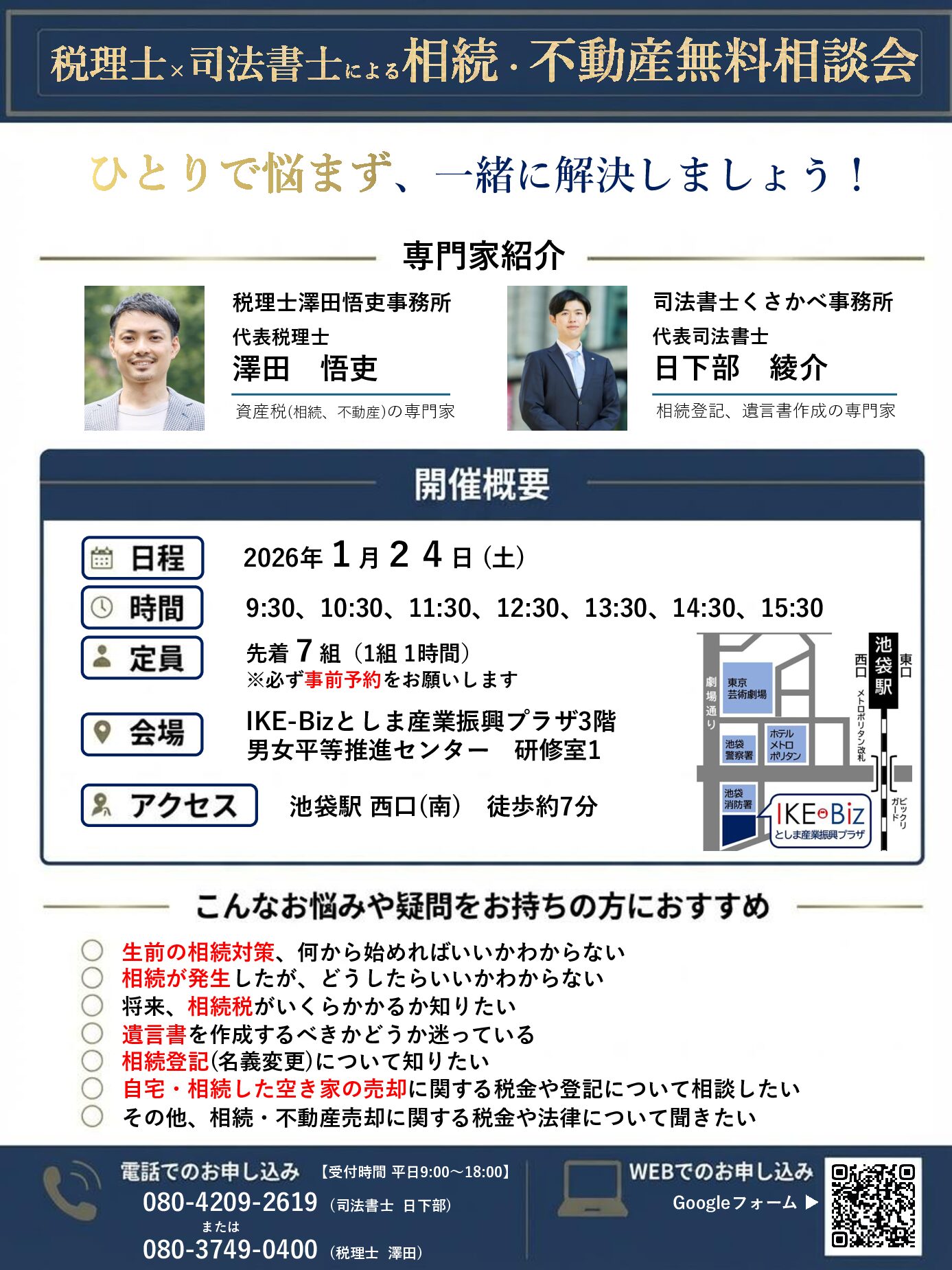定員オーバーの場合は、後日改めてご相談機会を設ける予定です。